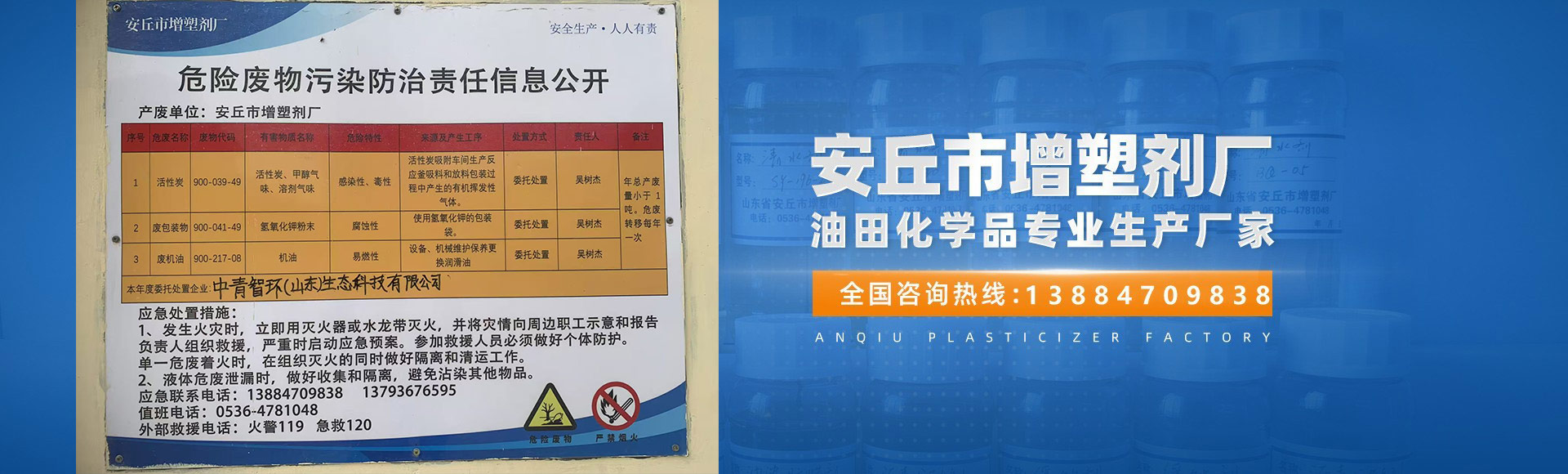 安丘市增塑劑廠始建于1984年,坐落在“全國重點鎮”安丘市景芝鎮,山東省高新技術企業,“山東制造”品牌認定企業。主要從事油田化學品的研制、生產與銷售,是破乳劑、瀝青抑制劑等油田化學品專業生產廠家。公司先后與中國石油大學、山東理工大學和濱州學院合作,建立了“油田化學聯合研究所”、“水處理聯合研究所”、“長期教學基地”和“大學生創新創業實踐基地”。公司已通過ISO9001質量體系認證、ISO14001環境管理體系認證和ISO45001職業健康安全管理體系認證,取得“安全生產標準化證書”。公司配套產品生產線10條,年綜合生產能力20000噸以上。 主要產品有原油破乳劑、ALF系列瀝青抑制劑、清水劑、AQ系列污水處理劑、YE系列石蠟分散劑、AG系列稠油降粘劑、AN系列降凝...